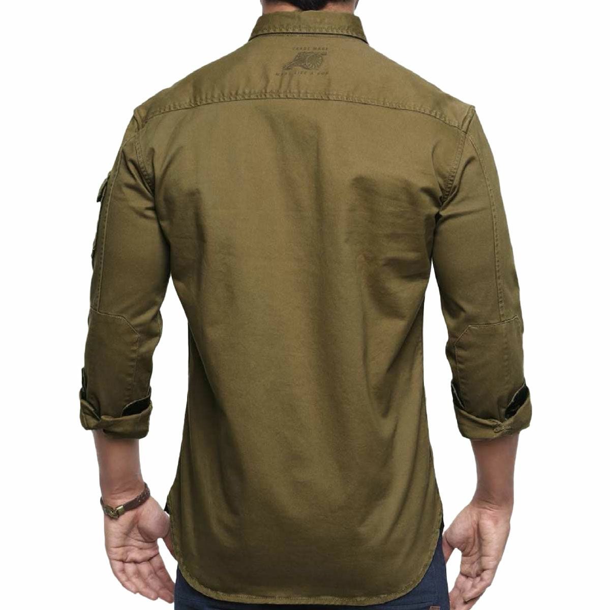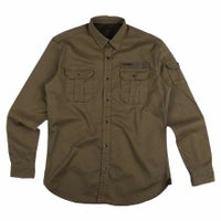 オーソドックスでシンプルなワークシャツです。アーミチックなテイストで、左袖と胸元のポケットが特徴です。