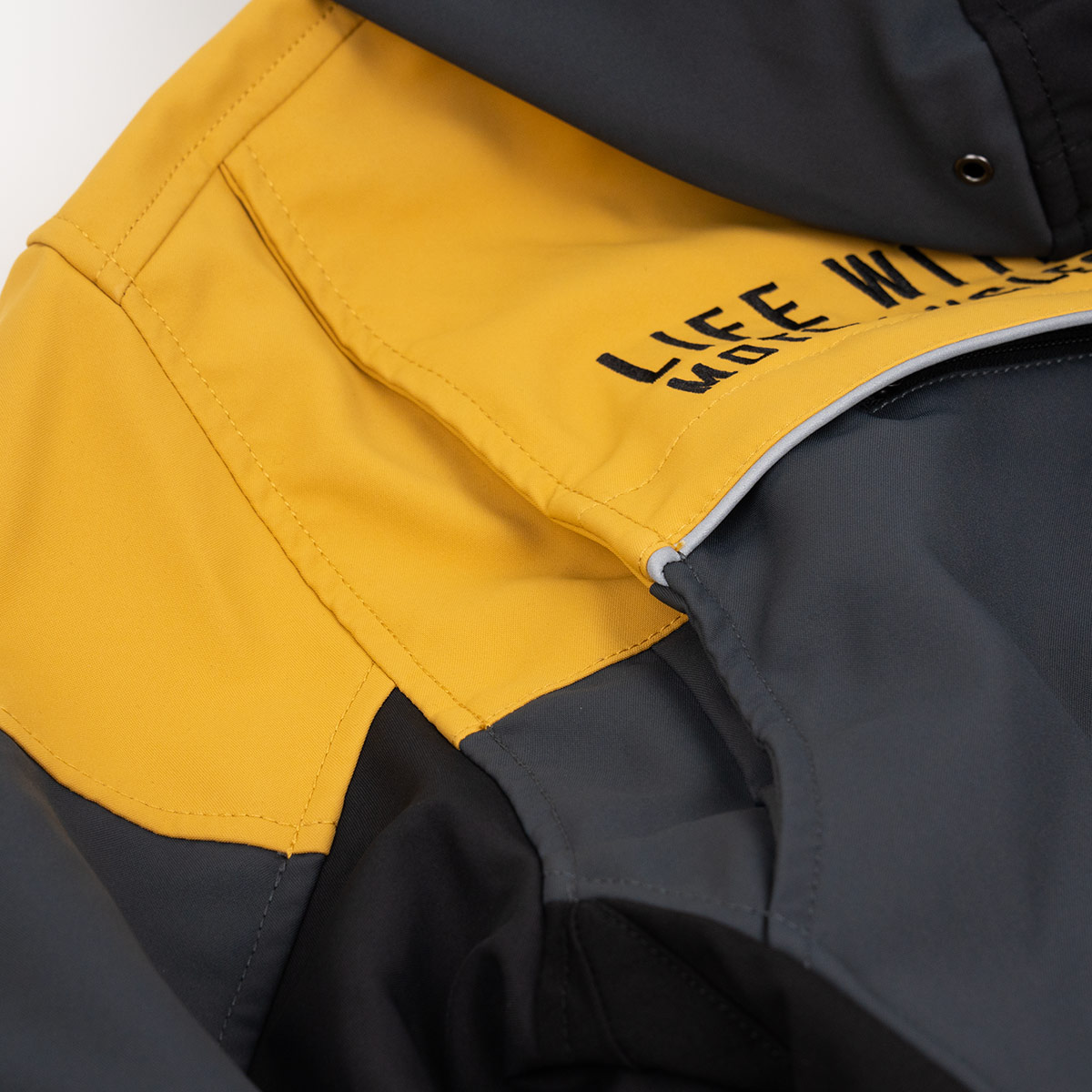 軽量ナイロンを使用した、3シーズン仕様のソフトシェルジャケット。撥水・防汚・防油の「3防加工」で日常からツーリングまで安心して着用することが出来、シンプルでありながら大胆な切り返しデザイン。個性と快適性を両立した、56の人気商品です。